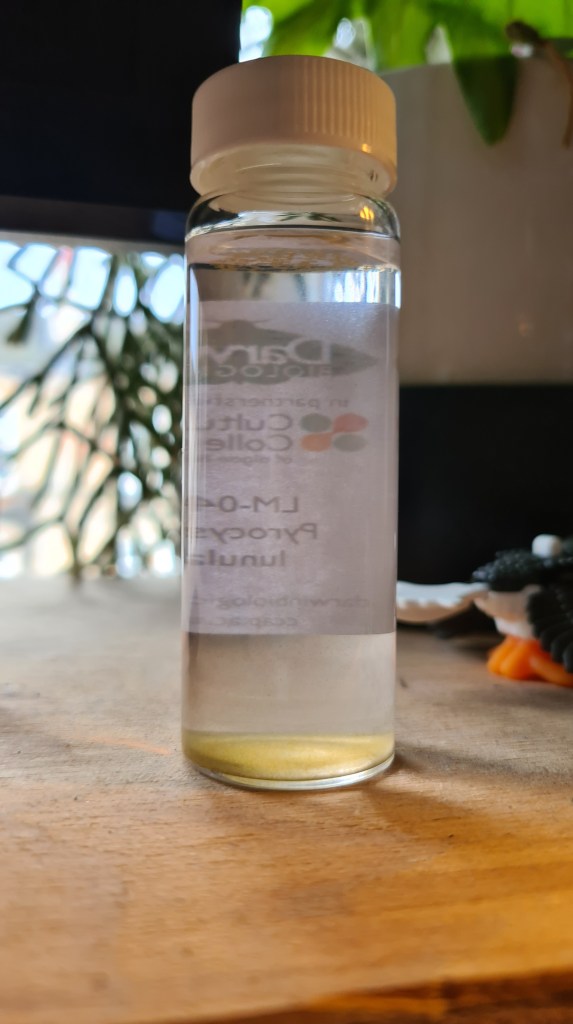 last year I tried to grow some lingulodinium polyedra but it didn’t end up well. a bad timing with the delivery and my inexperience led to the death of all my samples. at the time i chose to look into these lifeforms in order to prove a point about the intersections between art and science: i was in touch with a scientist from a lab in Poland (Dr. Maciek Wnuk, head of lab), who gave me some advice as to how to best get my cultures going – unfortunately, his advice came quite late because he was obviously very busy with his own work, so I couldn’t really attempt to grow the l. polyedra in time for the end of last year. it’s also valid pointing out that polyedra is slightly toxic. its yessotoxins accumulate in molluscs which, when digested by humans, can represent an issue because of the high concentrations of it. of course this means that by applying basic hygienic techniques (like using gloves, disinfecting work surfaces, not drinking the water) i could keep myself safe, but i was looking for something even more risk free, because GSA is paranoid and fair enough…